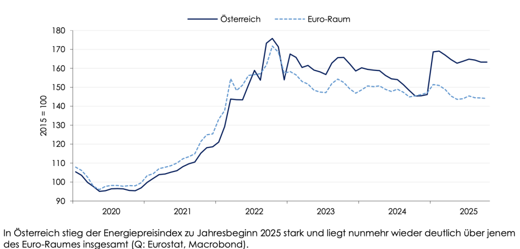 Dazu trug der sprunghafte Anstieg der Gas- und Strompreise zu Jahresbeginn und eine kräftige Verteuerung von Nahrungsmitteln im Frühjahr bei. Auch die Wohnungsmieten zogen zuletzt wieder stärker an. Infolge der flachen Konjunktur ist die Zahl der aktiv unselbständig Beschäftigten seit Ende 2024 weitgehend unverändert. Während der Personalstand in der Industrie sank, stieg er im Gesundheits- und Sozialwesen stark. Die Arbeitslosenquote ist seit Jahresbeginn tendenziell gestiegen (nationale Definition, saisonbereinigt), da der Arbeitsmarkt infolge der schwachen Konjunktur derzeit nicht in der Lage ist, den Anstieg des Arbeitskräfteangebotes aufzunehmen.