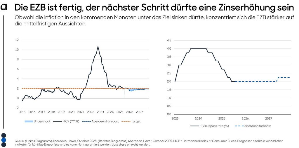 Was die Entwicklung bei den Leitzinsen betrifft, dürfte die Fed weiter einen Lockerungskurs fahren. Die EZB wird laut Wehner hingegen so schnell nicht mehr senken: „Dafür hat sie keine wirklichen Beweggründe, die Zinsen werden zunächst auf gleichem Niveau bleiben. Vielleicht ist 2027 mit einem Schritt nach oben zu rechnen.