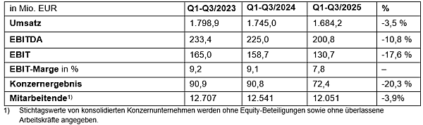 PALFINGER verzeichnete in den ersten drei Quartalen 2025 einen Umsatz von EUR 1.684,2 Mio. und ein operatives Ergebnis von EUR 130,7 Mio. Das Konzernergebnis betrug EUR 72,4 Mio. Besonders hervorzuheben ist der deutliche Anstieg des Free Cashflows.